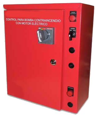 Tablero de control que se utiliza para el arranque y paro de la bomba eléctrica a tensión plena (ATP) de modo manual y automático por medio de un presostato que se conecta en la red hidráulica para sistemas contraincendios.