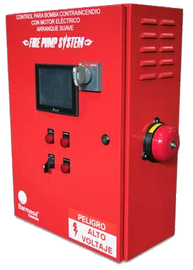 Tablero de control que se utiliza para el arranque y paro de la bomba eléctrica con arranque suave de modo manual y automático (incluye rampas de aceleración/desaceleración), por medio de un presostato que se conecta en la red hidráulica para sistemas contraincendio.