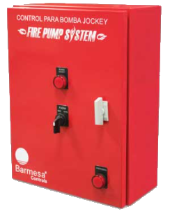 Tablero de control que se utiliza para controlar la operación de la bomba Jockey a tensión plena (ATP) de modo manual y automático por medio de un presostato que se conecta en la red hidráulica para sistemas contraincendios.
