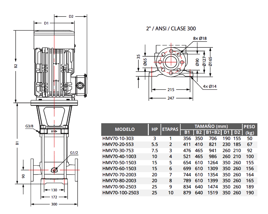 Las bombas de la serie HMV están diseñadas para garantizar que puedan instalarse directamente en el sistema de tuberías con los mismos diámetros y que la salida y la entrada estén al mismo nivel.