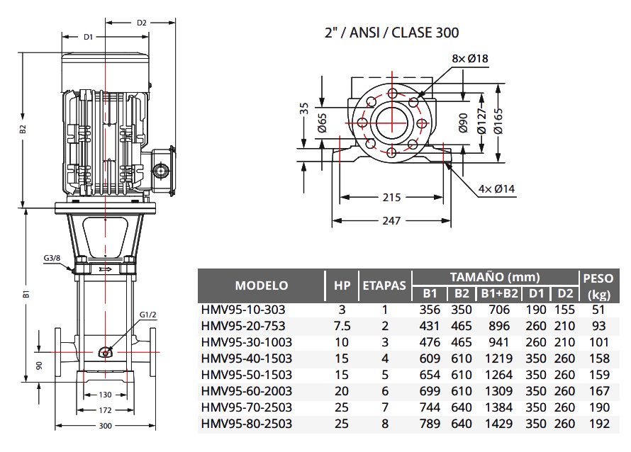 Las bombas de la serie HMV están diseñadas para garantizar que puedan instalarse directamente en el sistema de tuberías con los mismos diámetros y que la salida y la entrada estén al mismo nivel.