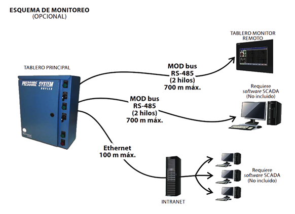Cuenta además con la función de alternar y simultanear las bombas por medio del control inteligente PLC de última tecnología, con la finalidad de que tengan un desgaste uniforme y prolonguen así el tiempo de vida útil de los equipos.
